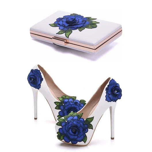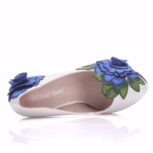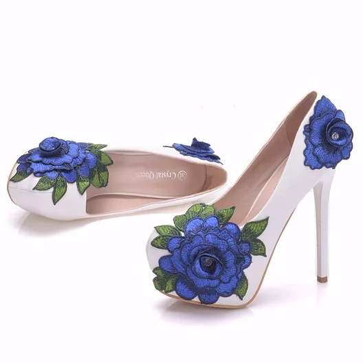 Crystal Queen Blue Lace Flower Bride Shoes