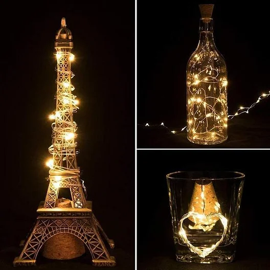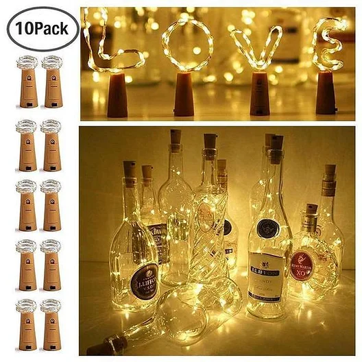 These lights come on a long string attached to a cork. Simply insert the lights into an empty bottle and the cork keeps them all in place! Try using the lights with different colored bottles for different effects.