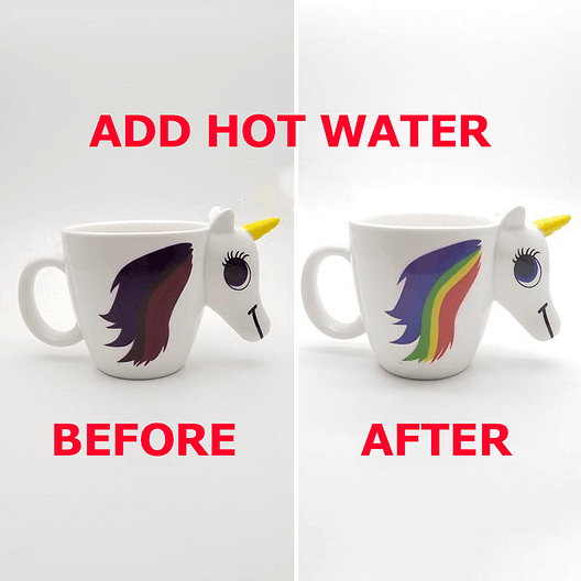 Color changing, show up with a beautiful rainbow when the mug is filled.